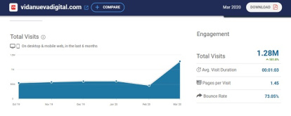 Tomando como referencia los datos de marzo que ofrece de manera pública Similar Web, Religión en Libertad se mantiene líder; Vida Nueva se coloca en segundo lugar tras una fuerte subida este mes; en tercer lugar se mantiene Infovaticana mientras que Infocatólica cae al cuarto lugar. Es ya en quinta posición donde aparece Religión Digital, el medio dirigido por José Manuel Vidal.
