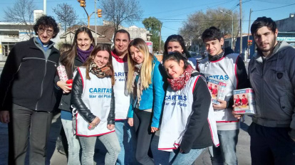 Unos jóvenes participan en una colecta de Cáritas en Argentina... pero la acción social debe llegar a conectarse con la fe, el trato real con Cristo y la vida parroquial.