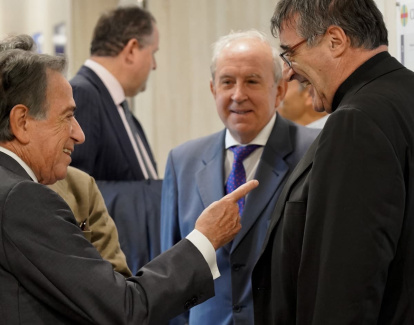 El psiquiatra Enrique Rojas con el padre Pablo Cervera, director de la Revista Magníficat, y Luis Alberto Rosales, de Fundación CARF.
