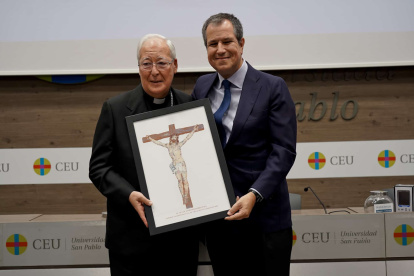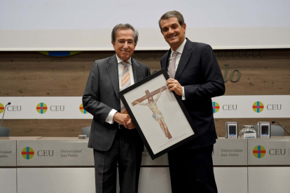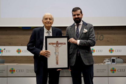 El obispo emérito de Alcalá, Juan Antonio Reig Pla, recibe el Premio Maestros en la Fe de manos Álex Rosal, director de ReligionEnLibertad. Reig Pla ha destacado como defensor de la familia y la vida, promotor de la Nueva Evangelización y un valiente maestro de la Doctrina Social de la Iglesia.
