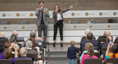Los conductores del acto fueron el periodista Álex Navajas y Leticia Ponce, una patrona de la Fundación Nueva Evangelización.
