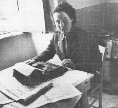 El honor de pasar a máquina el discurso del 18 de junio de 1940 incumbió a la joven Elisabeth de Miribel (1915-2005) que se desempeñaba como secretaria en la embajada francesa en Londres, donde había llegado en 1939 tras haber militado en varios movimientos socialcristianos. Durante la guerra participó en diversas misiones y fue corresponsal de guerra. En 1949, sació sus inquietudes espirituales haciéndose carmelita. Pero su frágil salud le obligó a abandonar el convento al cabo de cinco años. Ingresó entonces en la carrera diplomática, desempeñando diversos puestos hasta que se jubiló en 1980 siendo cónsul general de Francia en Florencia. (Pie de foto del autor del artículo.)