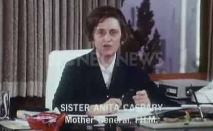 En torno al minuto 35:45, el entonces obispo Shannon nos presenta el decreto del Vaticano Ii sobre la vida religiosa, Perfectae caritatis, y la revisión y reconsideración general de cómo vivían las órdenes rligiosas. Esto nos lleva a la hermana Anita Caspary, madre general de las Hermanas del Corazón Inmaculado, quien como es bien sabido condujo a su orden casi a una disolución total con la “ayuda” del psicólogo Carl Rogers.