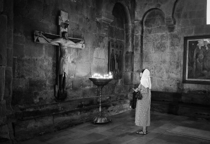 Si hay algo cotidiano para los georgianos es, precisamente, esa presencia divina, que se sienta en sus mesas a comer, les acompaña para ir a trabajar y es la indiscutible líder de la nación, incluida para la muy corrupta clase política. En la iglesia de Kashveti, en la céntrica calle Rustaveli, todo esto se observa bien. Dependientas de ropa de moda, hombres de negocios, ancianos que hablan ruso… entran y salen del templo en pleno horario laboral. Rezan, colocan unas velas, tocan con devoción los iconos y regresan a trabajar. Como si Dios, en lugar de grandes formalidades, reclamara para sí, más bien, absoluta familiaridad.