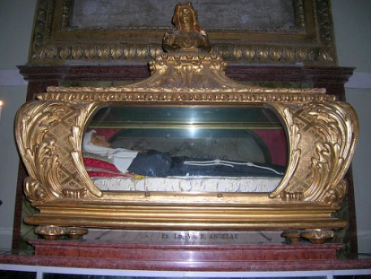 Mascarilla de cera sobre el cuerpo de Santa Ángela de Foligno, en la ciudad del mismo nombre