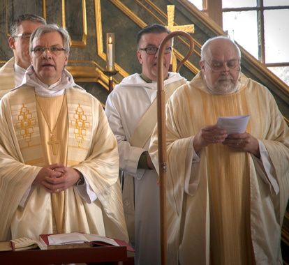 El obispo luterano de Strängnäs (abajo, en la foto junto a Ekblad en un servicio) comentó a la prensa local: "No voy a criticar el hecho de que Lars Ekblad se convierta a la Iglesia católica, aunque sea triste después de tanto tiempo salir de la Iglesia de Suecia para ir a una iglesia con la que, en gran medida, compartimos la misma fe".