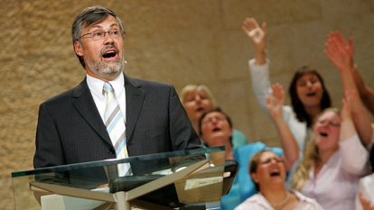Cuando Ulf Ekman tenía barba, con un coro de alabanza detrás