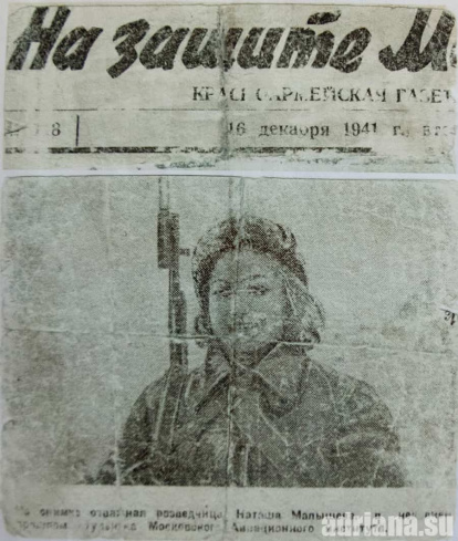 En el periódico del ejército rojo le dedicaron una foto de portada el 16 de diciembre de 1941