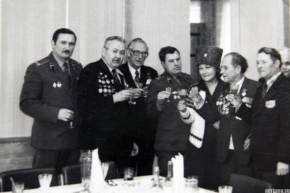 Natalia Malýsheva en una reunión con antiguos camaradas del ejército