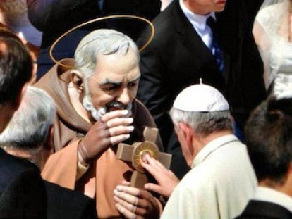 Nunca hasta el Año de la Misericordia, el Papa Francisco había citado a San Pío de Pietrelcina en sus discursos u homilías; no se conocen libros o publicaciones en las que se hable de un vínculo entre Bergoglio y el santo; pero el Pontífice quiso, sorprendiendo a muchos, que durante el Jubileo extraordinario de la Misericordia se expusieran en la Basílica de San Pedro los restos del fraile estigmatizado.