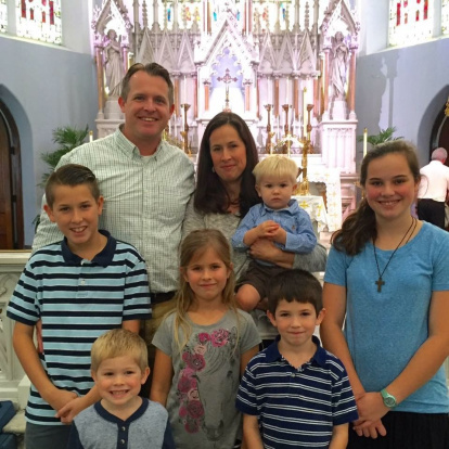 Amy y Shannon y su familia numerosa hoy; ellos dicen que los sacramentos han hecho crecer su amor año tras año