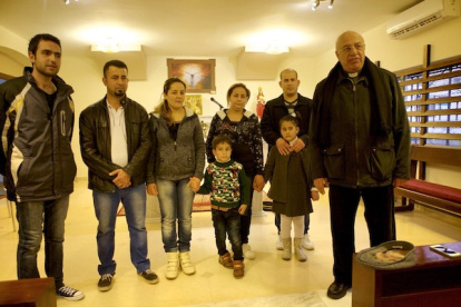 Dos familias iraquíes acogidas por el padre Hanna desde hace dos años.