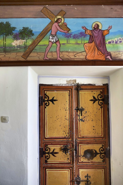 Ejemplo de ello son los restos de disparos que hay en una puerta interior y en su marco. Antes de llegar ellos, estaba a cargo del santuario un sacerdote. Un día alguien del pueblo levantó el falso testimonio de que el cura tenía relaciones con una joven menor de edad. Una turba armada se dirigió al santuario con el fin de matarlo allí mismo. El cura salvó la vida milagrosamente y huyó. Después se comprobó que la acusación era falsa. “Hemos dejado aposta los restos de las balas para no olvidar dónde estamos y lo que nos puede suceder también a nosotros”.