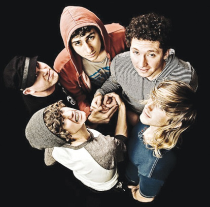 Patrick, a la izquierda, con su banda y unas admiradoras