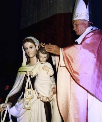 Para entonces ya era bien conocida esta devoción del Papa polaco a la Virgen del Carmen, que está en la raíz de su interés por San Juan de la Cruz. Siendo estudiante universitario leyó las obras del místico español y pensó ingresar en un convento carmelita donde solía hacer con los religiosos los ejercicios espirituales. No llegó a cumplir ese deseo (fue el cardenal Stefan Sapieha, arzobispo de Cracovia, quien disipó sus dudas, confesaría luego), pero sí le consagró su tesis doctoral, defendida años después en el Angelicum de Roma. Había, pues, un plan de Dios, como había reconocido él mismo en 1988 al coronar (como haría varias veces a lo largo de su pontificado) una imagen de Nuestra Señora del Carmen o del Monte Carmelo, en aquella ocasión la que se venera en Czerna. Fue durante su viaje apostólico a su Polonia natal, y no dudó en afirmar: “Hoy admiro los designios de la Providencia, que me ha incorporado a la espiritualidad carmelitana… Mi primer escapulario, al que he permanecido fiel, y el cual constituye mi fuerza“.