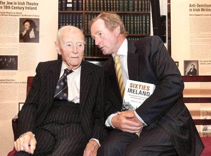 Un anciano Liam Crosgrave, junto a su sucesor Enda Kenny, en 2016, durante un acto en torno al libro de Mary Daly Sixties Ireland, que recoge la historia del país entre 1957 y 1973, una época de gran influencia pública de Crosgrave, justo antes de acceder al cargo de Taoiseach.