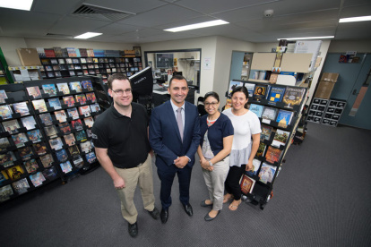 Charbel acompañado de algunos trabajadores de Parousia Media