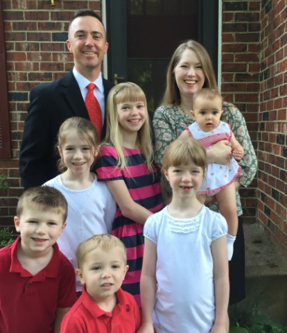 El padre Matt, de civil, con su mujer Kate y sus seis hijos