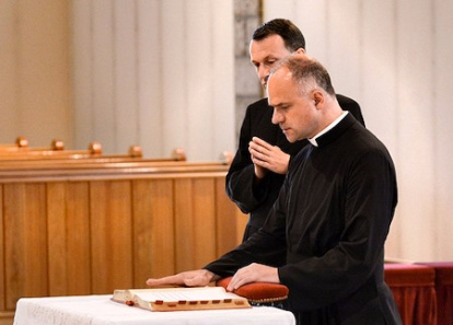 Momento del juramento del padre Davide Pagliarani como superior general de la Hermandad de San Pío X.