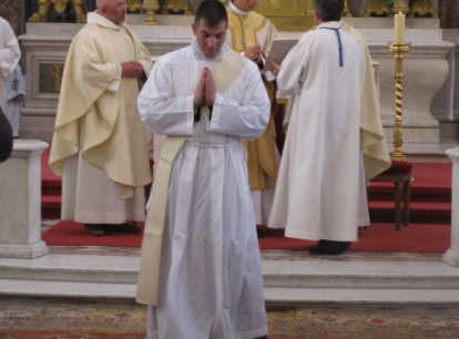 Renaud aún revestido como diácono, el día de su ordenación sacerdotal