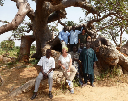 Lola, con algunos colaboradores y colegas de Níger, en un baobab, que la población local considera sagrado; del baobab se pueden aprovechar las hojas y otros beneficios