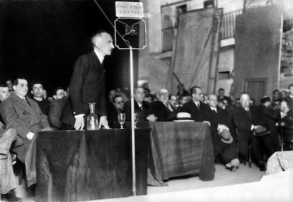Ángel Herrera Oria, durante un mitin de Acción Nacional, partido que promovió en 1931.