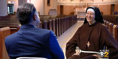 Enfundada de arriba abajo en su hábito marrón, el periodista de la CBS le pregunta si no se siente anticuada: "Alguna vez me lo han llamado, pero no creo que sea apropiado. ¡Sigo siendo una hipster!", bromea.