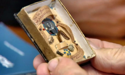 Norbert, el abuelo, siempre lleva consigo estas reliquias de Santa Marguerite Bays. Imagen: Youtube.