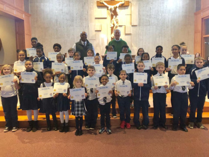 Algunos niños de la escuela parroquial Our Lady of Peace