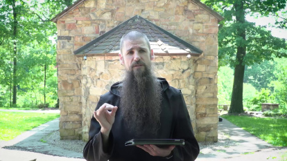 El padre Boniface Hicks en una de sus populares predicaciones que emite por Internet