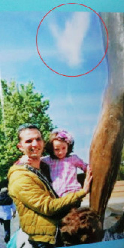 Mientras Simona descansaba en el hotel, la niña y el padre fueron con otros peregrinos a la estatua del Cristo Resucitado. Cuando al día siguiente repasaron las fotos, vieron una forma blanca que aparecía sólo en la foto con la niña, como las alas de una figura angelical.