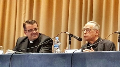 El padre Mendizábal habla ante la atenta mirada de Pablo Cervera
