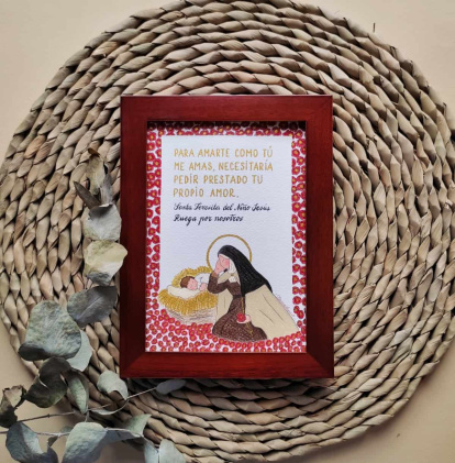 Dentro del dibujo, las láminas enmarcadas para bautizos y comuniones son el buque insignia de este joven proyecto que más demandan sus clientes. "También gustan mucho los recordatorios o las láminas para regalar en consagraciones marianas, bodas y cumpleaños", explican. @trazodemami completa su catálogo con angelitos de escayola y Sagrados Corazones de Jesús artesanales realizados en fieltro, acompañados de una tarjeta explicativa para difundir esta devoción.