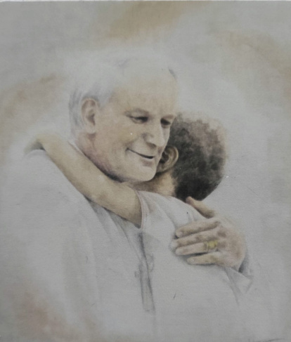 "El abrazo", uno de los retratos de Juan Pablo II realizado por HaledS para regalo y decoración.