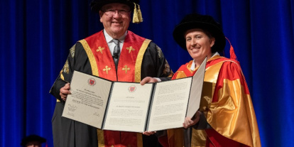 La hermana Melissa, recibiendo el doctorado honoris causa por la Universidad Católica de Australia.