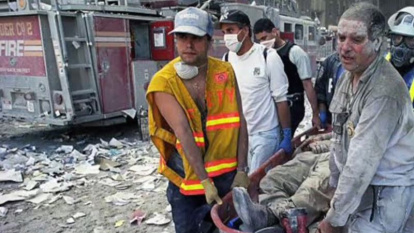 William Rodríguez, primero por la izquierda en la foto, ayudando a rescatar heridos en las Torres Gemelas.