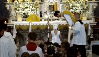 Anne, el día de su comunión, que recibió una vez acabada la misa.