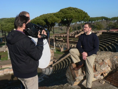 Mike Aquilina, presentando un documental en Roma sobre San Agustín y Santa Mónica