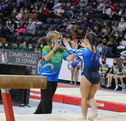 Su entrenadora recuerda emocionada la prueba. "El público la ha aplaudido mucho, y en el último aparato, puestos en pie, la han ovacionado. Se me ha puesto la piel de gallina", describe.
