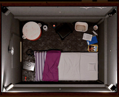 »El mobiliario era muy precario, al no ser un cuarto corriente, no tenía instalaciones de ningún tipo: no tenía baño, no tenía lavabo, no tenía ducha. Básicamente tenía un colchón muy pequeño, que era casi como dormir en el suelo. Esto me causó muchos dolores de cervicales y de espalda durante semanas.