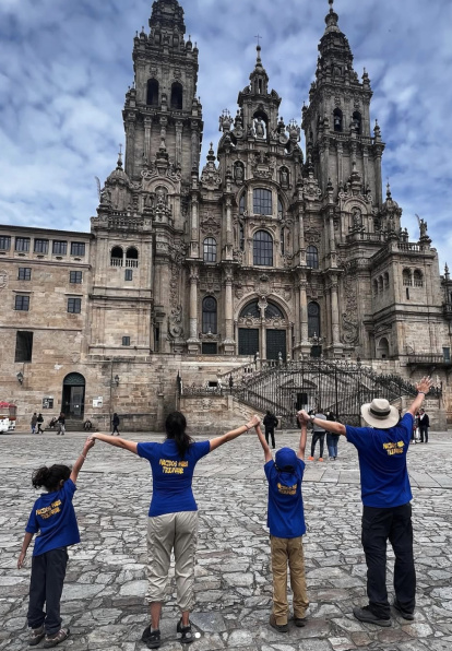 Alberto junto a su familia tras terminar el Camino de Santiago.