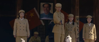 Comunistas (incluyendo a Lin Zhao) llegan a una iglesia en la película Five Cents Life de Yueh Liu