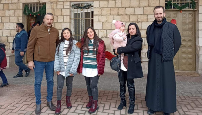 Miguel Pérez, con una familia cristiana de la parroquia de Rafidia