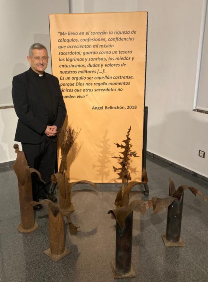 En plena guerra de Afganistán, ante la amenaza continua de la muerte, el miedo y la destrucción, la misión del capellán Ángel Belinchón (1958) era de una importancia crucial: acompañar a los soldados a él encomendados, dar respuesta al sentido de la vida cuando esta parecía no valer nada y, de ser posible, hacerlo a través de la belleza. Religión en Libertad ha acudido a la exposición El Páter, entre la tierra y el cielo del Instituto de Historia y Cultura Militar, donde Belinchón expone las obras que aúnan su triple faceta de sacerdote, soldado y artista y que hablan del él mismo, pero también "del gran artista que es Dios".A lo largo de su dilatada experiencia en las misiones de Bosnia (1997 y 2002) y Afganistán (2011), el capellán ha podido comprobar que "ante la realidad de la muerte, la gente mira al cielo".