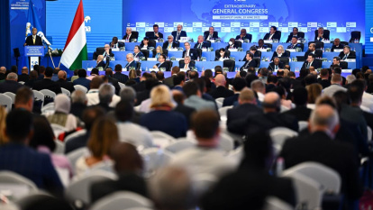 El presidente de la Federación Internacional de Natación, Husain Al-Musallam, durante el Congreso que resolvió por una amplia mayoría no admitir a atletas trans en competiciones contra mujeres.