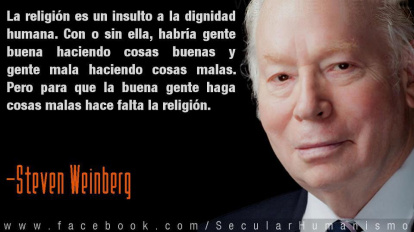El ateo de familia judía neoyorquina y Premio Nobel de Física Steven Weinberg dijo en 1999: "Con o sin religión, la gente buena puede portarse bien, y la gente mala puede hacer mal; pero para que la gente buena haga el mal, se necesita la religión".