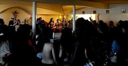 Escena de la ocupación grosera de la capilla, en la que estuvieron Rita Maestre y Héctor Meleiro, políticos de Ahora Madrid