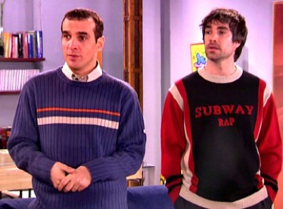 Luis Merlo y Adrià Collado, una de las parejas homosexuales de Aquí no hay quien viva, única serie española citada en el artículo de Austin Ruse.