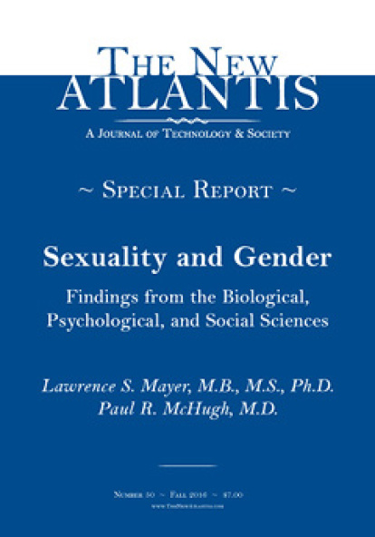 La publicación de Tecnología y Sociedad The New Atlantis publica en su número 50 (otoño de 2016) un "informe especial" titulado "Sexualidad y género. Hallazgos de las ciencias biológicas, psicológicas y sociales" donde se revisan más de quinientas investigaciones científicas recientes sobre la orientación sexual, la correlación entre orientación sexual y salud mental y la naturaleza y problemática de la identificación transgénero.