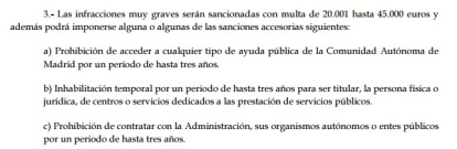 Bajo estas líneas, fragmentos de la normativa madrileña y sus multas LGBT: cualquier intento de modificar la "orientación sexual" (incluso una mera oración, ya que impide "intervenciones religiosas") será considerado "infracción muy grave"